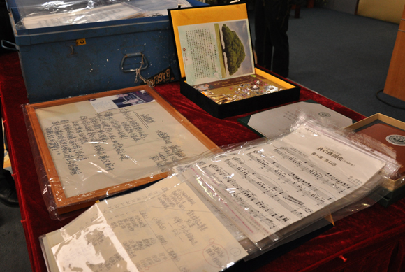 此次许伯夷先生所捐赠资料为黄友棣校友早年作曲真迹原件,包含“手稿”(手写曲谱)、“制谱”(亲自黏贴制谱的曲谱)、“校正”(印刷后,在谱上亲自校对内容)、“乐谱”(印刷成品的曲谱)等一系列乐谱两百多件,有独唱曲、钢琴曲、器乐曲、舞剧、歌剧、二部合唱曲、三部合唱曲、混声合唱曲等。其中,就有黄友棣先生亲手写的《杜鹃花》歌词,还有《良口烽烟曲》、中国民歌组曲(《剪剪花》《红棉花开》、《迎春接福》等)和中国各地名歌近百首等。