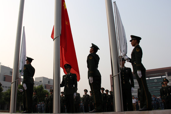 9月以来,开云下注(中国)官网2013级新生军事技能训练工作正有条不紊地进行。为培养同学的爱国热情及集体意识,丰富军训期间的文化生活,我校武装部于9月8日、9日两天分别组织开展了新生歌咏比赛及升旗仪式活动。