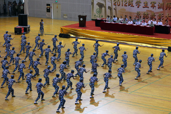 2012级学生军训总结表彰大会上的汇报表演