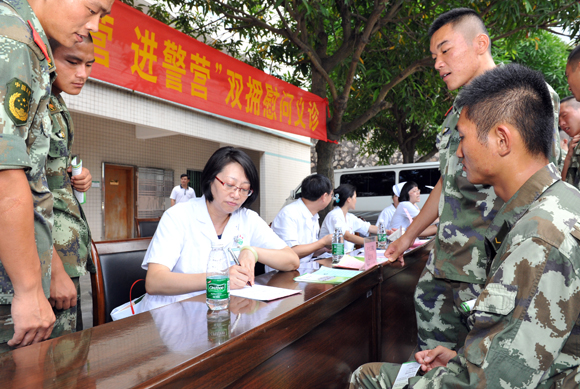 8月8日,附属五院10人义诊小分队又先后奔赴边防武警支队南屏大队、上冲检查站和金鼎检查站。在持续一天的义诊中给200多位官兵进行了检查并提供周到的咨询服务,中医科2位医师还为70余名士兵进行了针灸治疗。