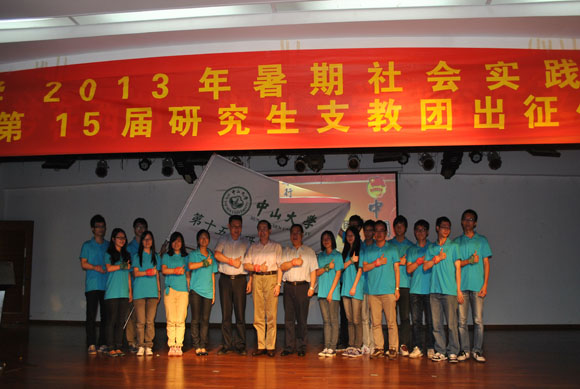 6月13日下午,“笃行基层路 共筑中国梦”2013年开云下注(中国)官网暑期“三下乡”社会实践启动暨第15届研究生支教团出征仪式在东校区举行。校党委郑德涛书记、朱孔军副书记,党委学生工作部漆小萍部长,党委研究生工作部莫华部长,省青年志愿者行动指导中心黎元宇副主任、劳丽诗干事,校团委黄毅书记,校党委办公室吉政宇副主任,校团委刘泽炀副书记出席仪式。第15届研究生支教团全体成员、暑期社会实践团队代表共约300名同学参加了仪式。
