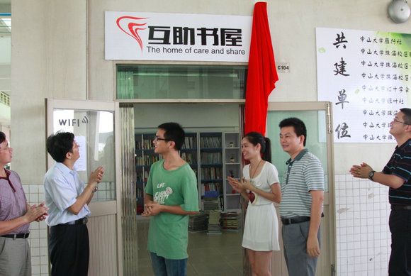 6月5日上午,由学生自发组织的公益性“互助书屋”在珠海校区教学楼C104揭牌。珠海校区党工委、校区相关部门、院系负责人为“互助书屋”揭牌。