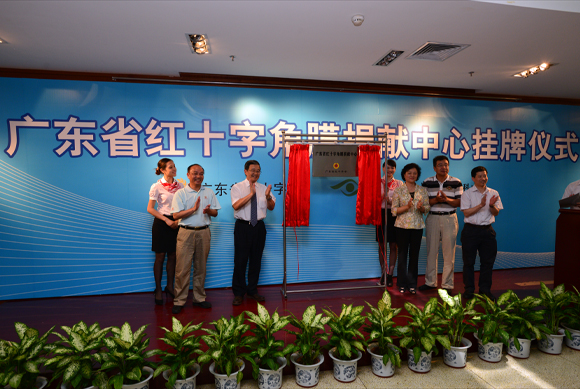 雷于蓝会长,梁健常务副会长,汪建平常务副校长,廖新波副厅长,刘奕志主任共同为广东省红十字角膜捐献中心揭牌。