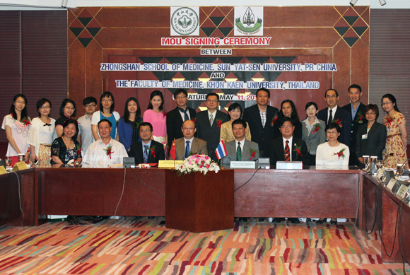 为推进学院国际学术交流,增进学院与东南亚地区在教育、文化和科技等方面的合作,近日,我校副校长、中山医学院院长黎孟枫与孔敬大学医学院院长Dr.Pisake Lumbiganon正式签署了《学术交流与合作协议书》。5月11日,中山医学院副院长吴忠道、海洋学院党委书记陈省平(原中山医学院副院长)率访问团前往泰国孔敬大学交流访问并交换协议书。吴忠道副院长代表学院与孔敬大学医学院院长Dr. Pisake Lumbiganon交换了协议书。