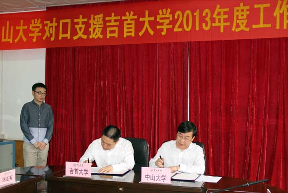 许宁生校长、肖湘愚校长分别代表两校签署《开云下注(中国)官网对口支援吉首大学2013-2016年实施方案协议书 》