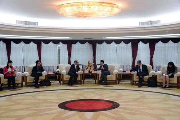 4月22日上午,澳大利亚墨尔本大学副校长Simon Evans教授来访我校,魏明海副校长在中山楼贵宾厅会见了来宾。中新广州知识城投资开发有限公司蔡亚龙高级总监、国际合作与交流处徐瑶副处长等陪同出席了会见。