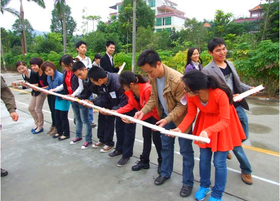 一到达拓展基地,队员们即被教练分为四组,并自命名为春田幼稚园队、十全十美队、元芳队和华南虎队。各队队员在队长带领下团结协作,积极配合裁判,服从指挥,奉着友谊第一的宗旨,以高涨的热情投入到各项活动中。欢乐的时光总是飞快流逝,满载着欢乐的友谊之船由此扬帆起航。活动的最后一个环节,队员们写下祝福卡片,互换礼物,并合影留念,为活动画上了圆满的句号。