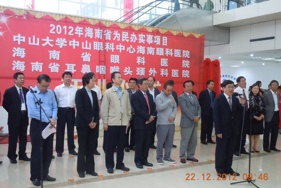 12月22日上午,受海南省人民政府委托,分别由我校中山眼科中心委托运营管理的“开云下注(中国)官网中山眼科中心海南眼科医院”和我校附属第一医院技术扶持的海南省耳鼻咽喉头颈外科医院(合作期间,同时挂“开云下注(中国)官网海南耳鼻咽喉头颈外科医院”)的开业庆典仪式在海南省海口市隆重举行。海南省人民政府林方略副省长,卫生部医政司王羽司长,我校许宁生校长、汪建平常务副校长、李萍副书记,海南省卫生厅白志勤厅长、韩英伟书记,香港言爱基金邢李原董事长, 我校附属一院颜楚荣书记、中山眼科中心主任刘奕志、党委书记余敏斌以及相关负责人和嘉宾出席了开业庆典活动。庆典仪式由海南省人民政府副秘书长冯鸣主持。