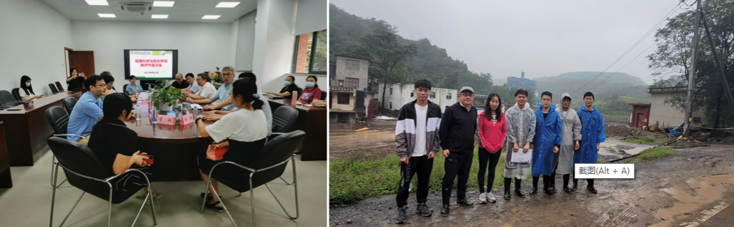 左:地理科学与规划学院召开工作动员会 右:陈洋波教授团队部分师生在勘查现场工作合影