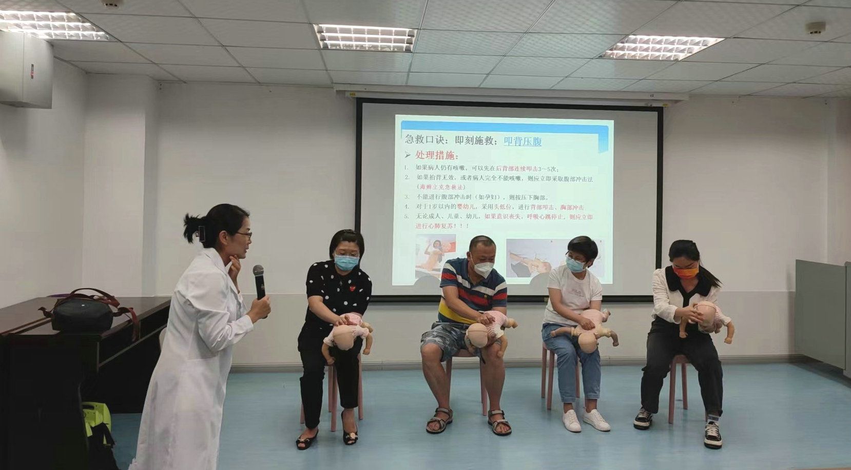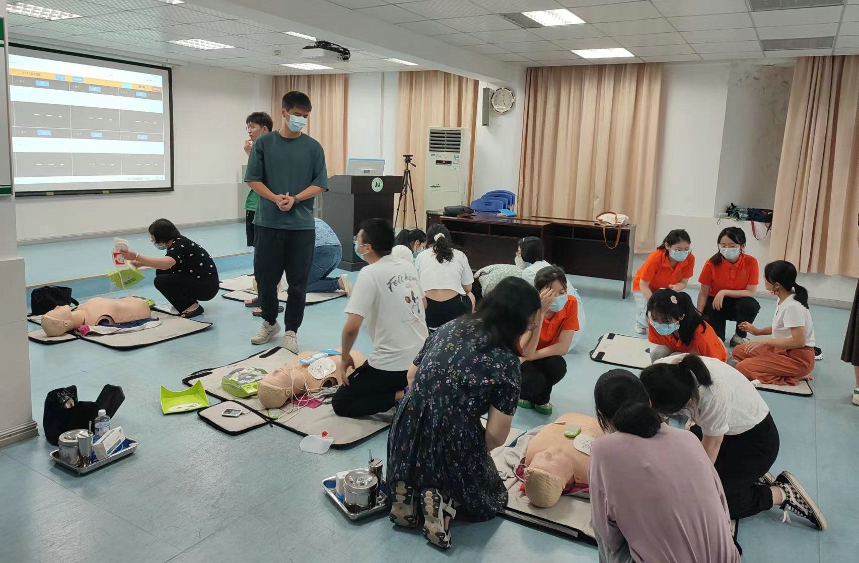 老师和学员们积极参与急救实操(来源:医院管理处)