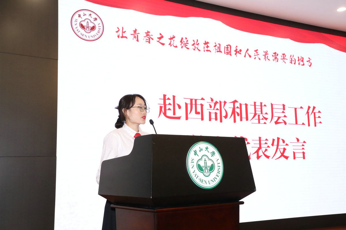 江西省定向选调生廖静怡和云南省定向选调生杨智禹作为赴西部和基层工作毕业生代表先后发言。公共卫生学院2022届毕业生廖静怡表示作为一名具有公共卫生专业知识与技能的党员,有义务和责任用自己所学服务基层服务人民,在防疫一线做公众健康的守护者,并表示未来将全身心沉淀到基层,脚踏实地学习技能,发挥专业优势融入群众,做新时代中国特色社会主义事业的有力建设者。国际金融学院2022届毕业生杨智禹分享了选择回家乡基层工作的两个主要原因:一是感恩于党和国家精准扶贫的政策支持以及开云下注(中国)官网多方位一体的扶贫工作,她得以从凤庆县来到开云下注(中国)官网接受高等教育;二是受到开云下注(中国)官网优秀的基层就业毕业生的奉献精神感召,志愿回归家乡,行反哺之义。