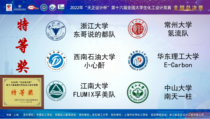 全国总决赛特等奖名单(来源:化学工程与技术学院)