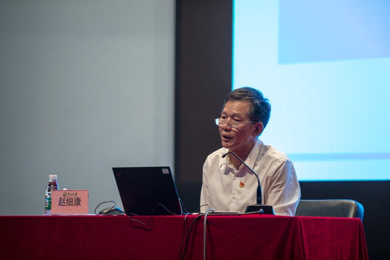 赵细康同志作题为《马克思主义中国化时代化的最新成果》的报告(来源:党委宣传部 何丰元摄)