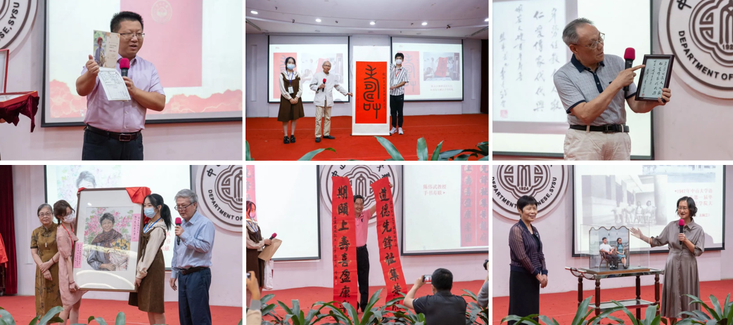 中国语言文学系曾宪通教授、吴承学教授、丘国新老书记向龙先生送上真挚的祝福,并分享读书、工作时与龙先生交往的点滴,表达了对龙先生在平凡岗位上创造不平凡的敬意。