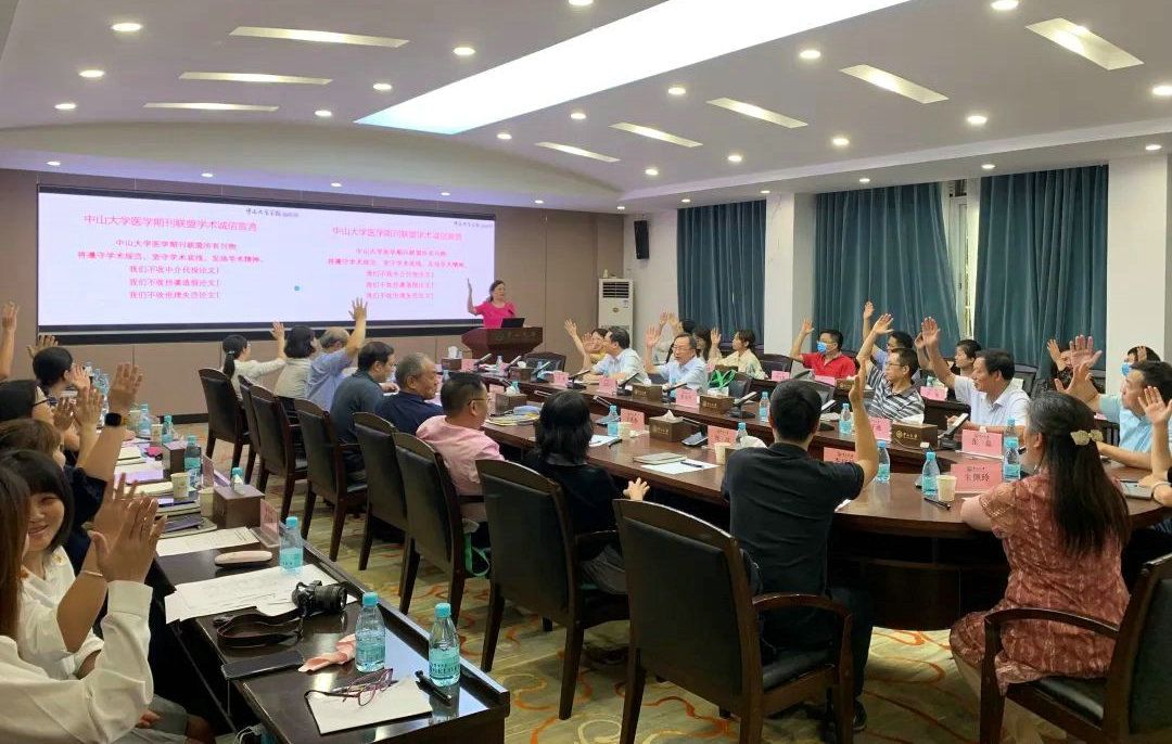 与会专家举手表决通过医学期刊联盟学术诚信宣言(来源:学报编辑部(期刊管理中心))