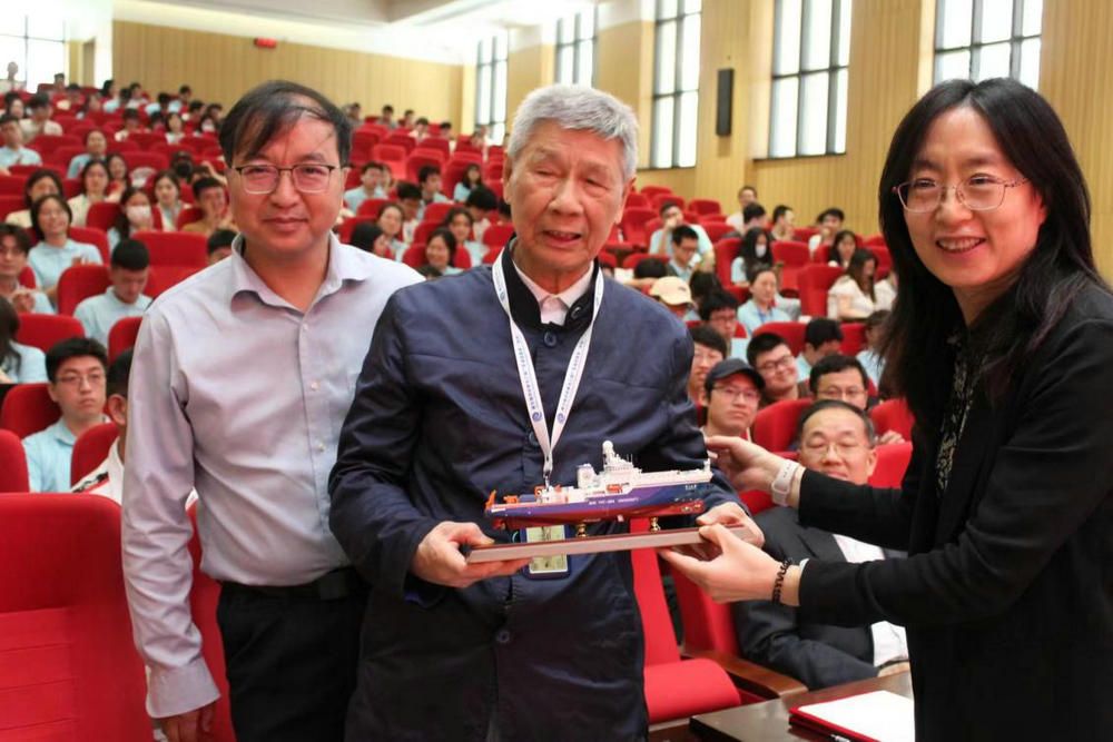 戴永久院士对讲座进行总结。戴院士首先表达了对曾先生的敬意,他表示从曾先生的身上看到了实事求是的科学家精神,值得所有师生敬佩和学习。1985届校友曾子祥听完曾院士的讲座和问答,感触良多,现场献诗“又一漠阳江上麟,玉山耕读少清贫。长空万里千千数,笑傲风云大气人”,表达对曾院士的敬佩与祝福。最后,董文杰院长、郑慧书记代表大气科学学院全体师生向曾院士赠送纪念品并表示感谢。