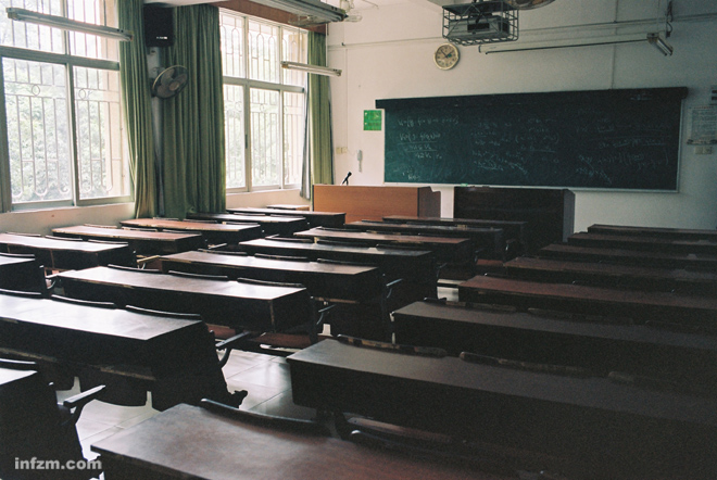有一天经过教学楼,然后想到,我拍了两年校园风光,怎么居然没想过要进教学楼拍一次?那时正是上课的时候,很多教室都挤满了人(当然也有寥落的)。我找到一间空教室,安静得能听得见我按下快门时发出的声音。我们在这里读书写字,瞌睡走神。每年的六月,总会有人来到此处,怀着念想,当年坐在我隔壁的你,明天要到哪里去?