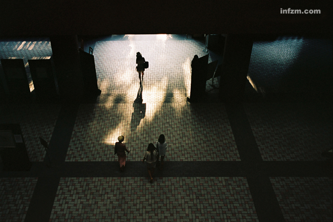 我一眼瞥到了楼下的人,正要走进夕阳里,于是拿出了相机上好了胶卷。我第二眼瞥到她走进了夕阳里,这时我对好了焦。我第三眼看到她的影子被拉长,于是按下快门,光阴就被定格在了那一刻。