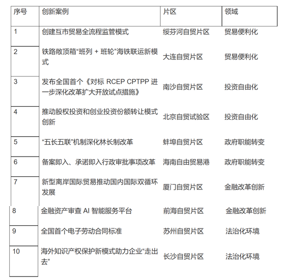 表1 “2021-2022 年度中国自由贸易试验区制度创新十佳案例”评选结果