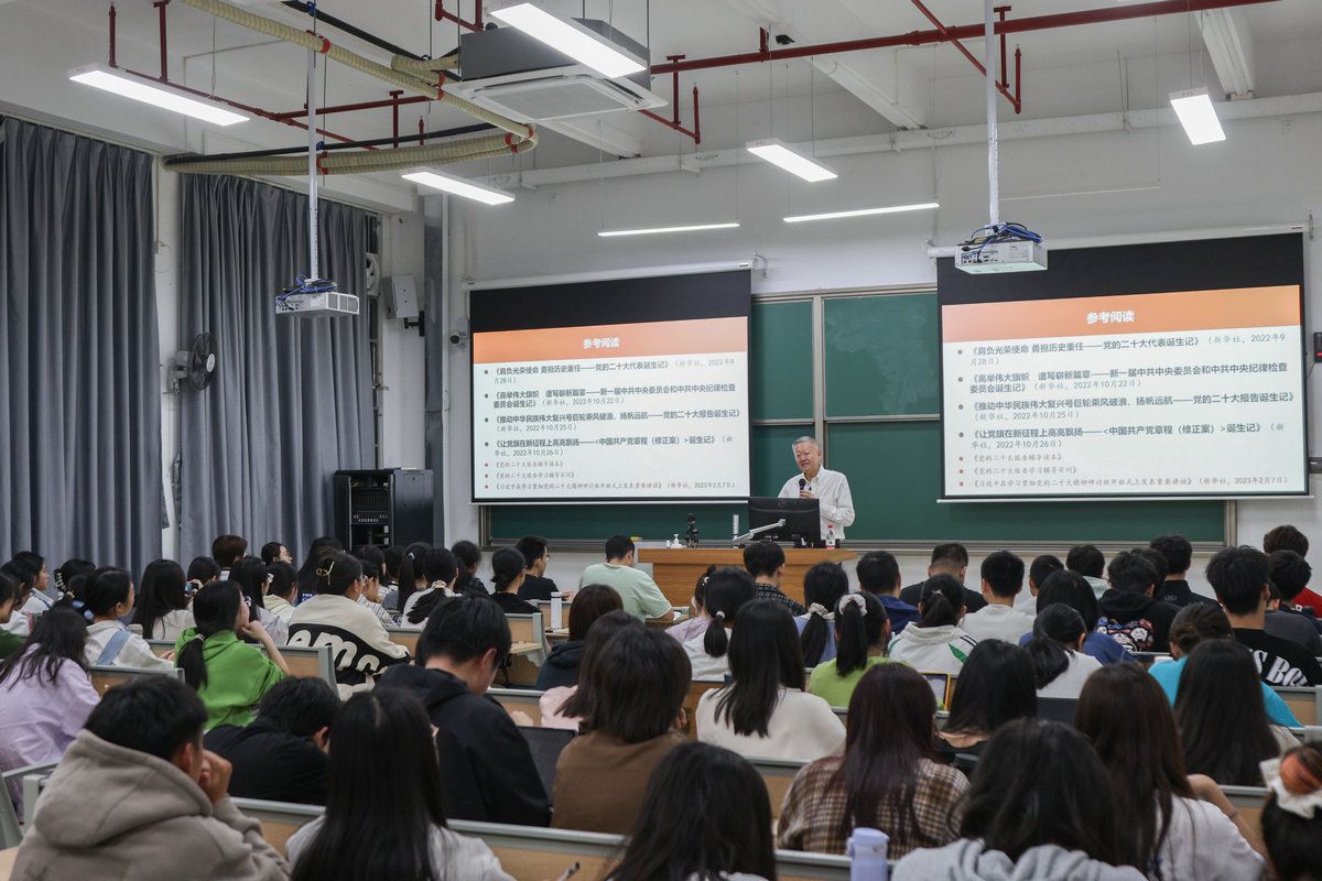 开云下注(中国)官网网广州3月7日电(记者孙琛)3月6日晚上,学校党委书记陈春声教授来到广州校区南校园丰盛堂C101教室,在“习近平新时代中国特色社会主义思想概论”课堂上为政治与公共事务管理学院2022级的106名本科生讲授“思政第一课”,宣讲党的二十大精神。陈春声书记结合自身参会经历和体会,以“以科教兴国战略助力中国式现代化——学习党的二十大精神”为主题进行了课程讲授。