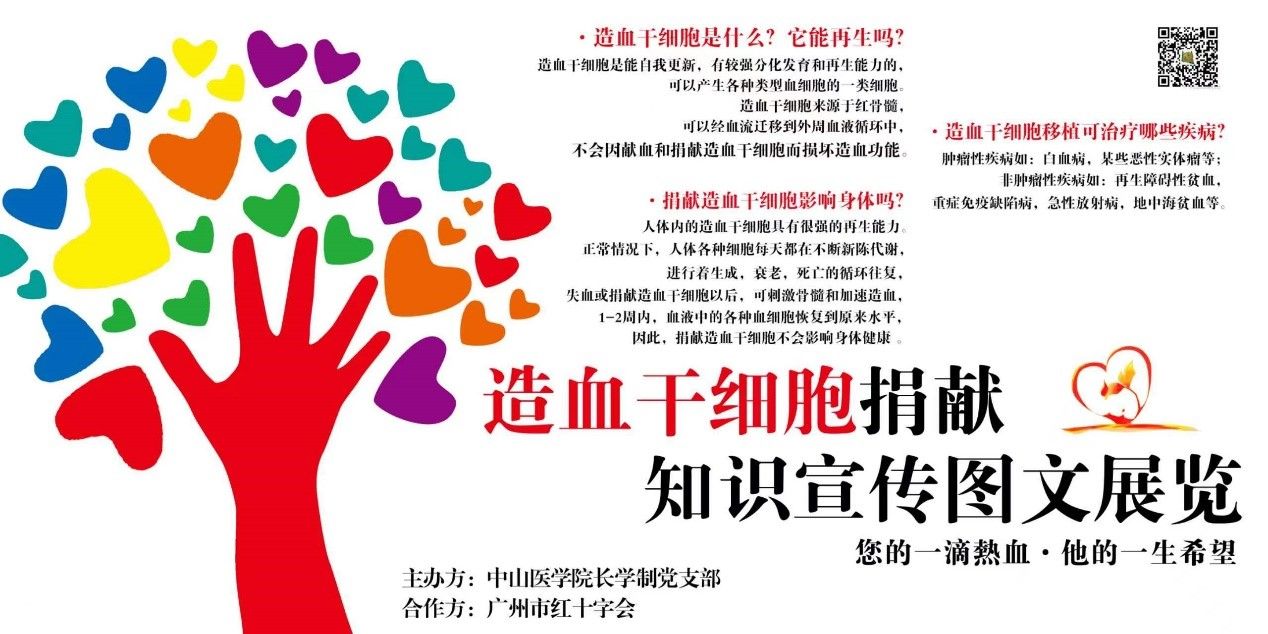 血液病对人类健康造成极大的威胁,造血干细胞移植不仅可以根治白血病,还可治疗许多重症血液病。中华骨髓库是挽救血液病患者生命,造福人民的公益事业,号召更多造血干细胞捐献志愿者登记入库,就能让更多血液病患者重燃生存希望。中山医学院长学制学生自 2009 年起在广州市红十字会指导下,组织学生志愿者队伍,面向朝气蓬勃的大学生群体,举办“造血干细胞捐献”科普宣传教育活动,号召同学们积极报名进行造血干细胞捐献,并协助广州市红十字会的专业团队采血入库,为助力健康中国贡献青年力量。