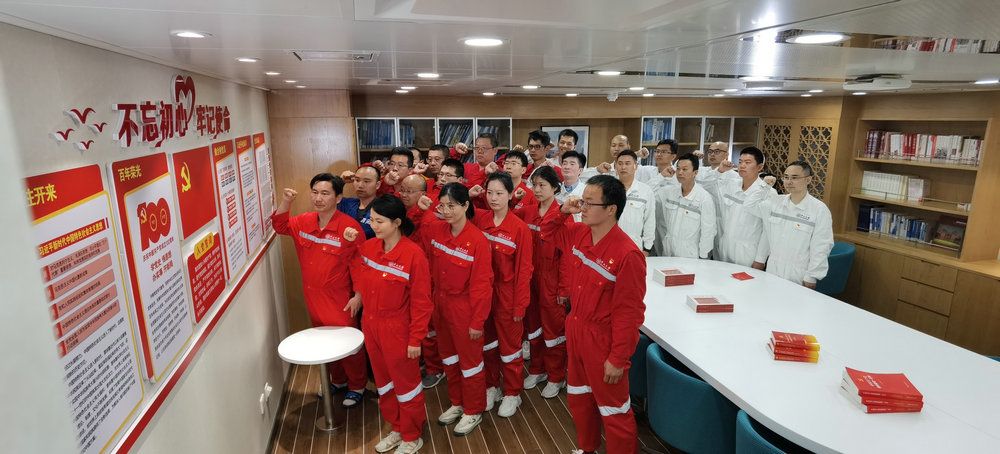 科考设备海试验收航次第一航段临时党支部全体党员在科考船上重温入党誓词