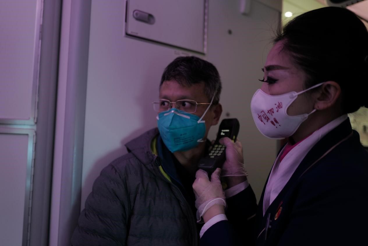 2020年2月7日,许可慰在去武汉飞机上用飞机上的广播告知队员进入武汉必须重点注意的事项