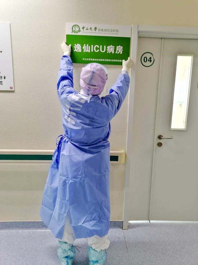 许可慰在前线为逸仙ICU病房挂牌