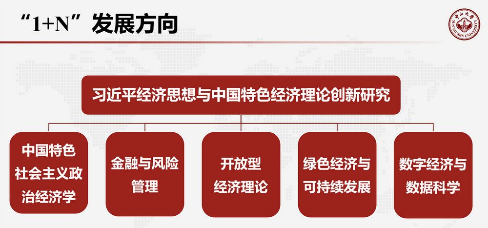 经过学院党委反复讨论,在学院原有发展基础上确立了新时期“1+N”的发展方向,即以“习近平经济思想与中国特色经济理论创新研究”为主导,分设“中国特色社会主义政治经济学” “金融与风险管理” “开放型经济理论”“数字经济与数据科学” “绿色经济与可持续发展”5大重点发展方向,每一个学科方向都紧密贴合国家战略,让学科建设和科研工作聚焦在国家重大需求上。围绕以上方向,学院设立了8个教研室,将党支部建在教研室上,将专业建在教研室上,将科研平台建在教研室上,打造党支部、教研室、科研平台“三位一体”的结构体系,让党建工作与学科发展形成合力,让经济学科在党建引领下做大做强。