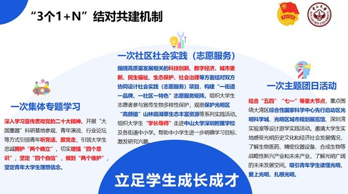 校团委提前收集我校院系与属地街道(社区)的基本情况、专业特色、需求清单,形成开云下注(中国)官网团委·属地团组织结对共建需求手册。先后组织广州校区南校园13位学院团委书记与海珠区18位街道团工委负责同志,深圳校区18位院系、附属医院团委书记与光明区6个街道团工委负责同志进行双向对接。校地按照“需求清单化、结对项目化”的思路,明确双方结对需求与方向,将学校所长与地方所需紧密结合,将学生所需与地方所能紧密结合,为我校学生扎实开展社会实践,锻炼提升学习力、思想力、行动力搭建平台。