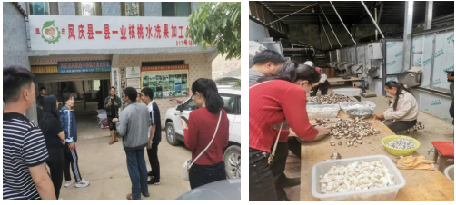 4月25日下午,农学院一行先后来到凤庆县一县一业核桃水洗果加工站和华林核桃种植专业合作社,与种植大户们座谈了解当地核桃产业发展现状,以及林下种植食用菌情况。熊新武副研究员和老师们针对经营中存在的问题,提出了加强修枝、林下种植、标准化生产、打造品牌等建议。