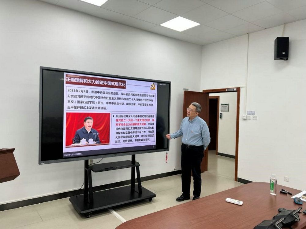 在主题教育专题读书班首次集体学习会上,薛德升同志以《学习党的二十大精神,准确理解和把握中国式现代化》为题作专题报告进行领学。党的二十大报告全面、深入和系统地对中国式现代化进行了阐述,是党的重大理论创新,也是科学社会主义的最新重大成果。他解读了新发展思想以及党的二十大报告中对中国式现代化的提出,并从地理学的专业视角出发,系统阐述了全球视野下十六世纪以来世界现代化发展的历史,介绍对“发展”界定的演变。通过对比西方语境下建构的发展理论,进而带领读书班成员深刻体会到习近平总书记在总结中国共产党人长期积累的经验智慧后提出中国式现代化的伟大意义,认识到中国式现代化为全面建成社会主义现代化强国、实现中华民族伟大复兴指明了一条康庄大道。