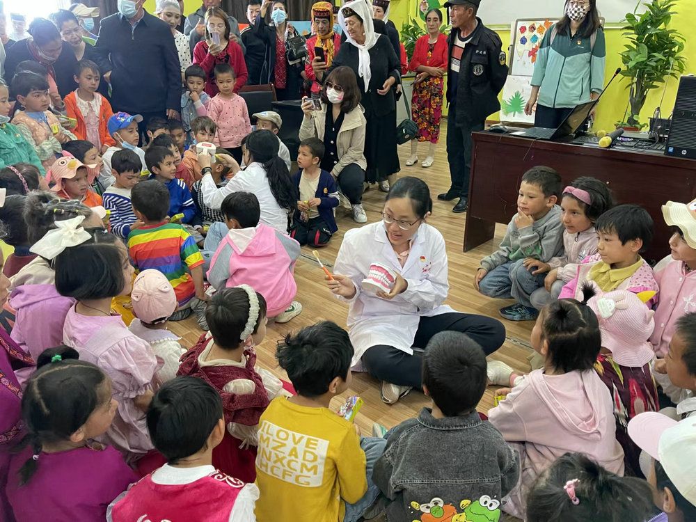 服务队来到喀什市第十二小学和喀什阳光第二幼儿园,通过开展生动有趣的口腔健康科普和涂氟防龋义诊活动,赠送好用好玩的口腔保健用品,“口腔健康 全身健康”的理念在小朋友的心中生根发芽。