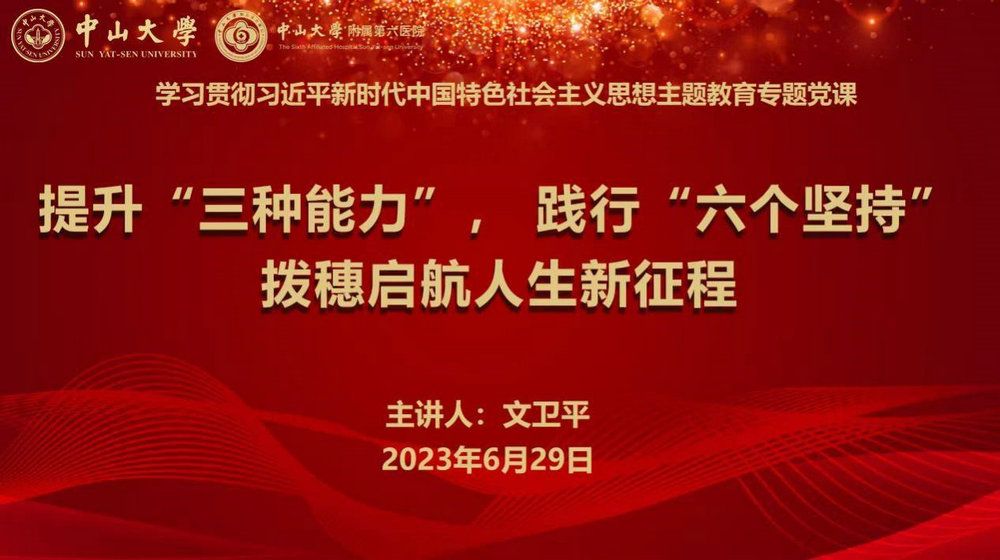 6月29日下午,附属第六医院党委副书记、院长文卫平面向全体硕士、博士毕业生作了题为《提升“三种能力”,践行“六个坚持”,拨穗启航人生新征程》的主题教育专题党课。文卫平在党课中提到,学习贯彻习近平新时代中国特色社会主义思想主题教育开展以来,作为院领导带头坚持高标准、高质量开展理论学习,深刻认识开展主题教育的重大意义,牢牢把握“学思想、强党性、重实践、建新功”的总要求,领题“高质量研究生教育与人才培养”开展系列调查研究,围绕主题调研推动发展、检视整改,成效明显。