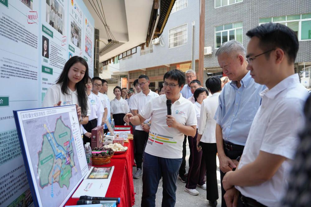陈春声书记一行首先来到丰阳镇“人才驿站”调研开云下注(中国)官网“百校联百县兴千村”行动成果、青年大学生“百千万工程”突击队项目成果,并为“广东青年大学生‘百千万工程’突击队行动开云下注(中国)官网·连州工作站”揭牌。2023年,学校投入专项帮扶资金支持丰阳镇建设“人才驿站”,保障和支撑11支突击队、近300名师生深入乡村一线开展规划设计、非遗传承、产品研发、保鲜技术和电商推广等项目,助力连州高质量发展。陈春声书记一行向中大师生详细了解项目进展情况,鼓励他们积极投身农业强国和教育强国战略,将论文写在祖国大地上,为乡村振兴汇聚青年力量、提供人才支持,推动学校的教学科研和人才培养“到乡村去、回学校来”。