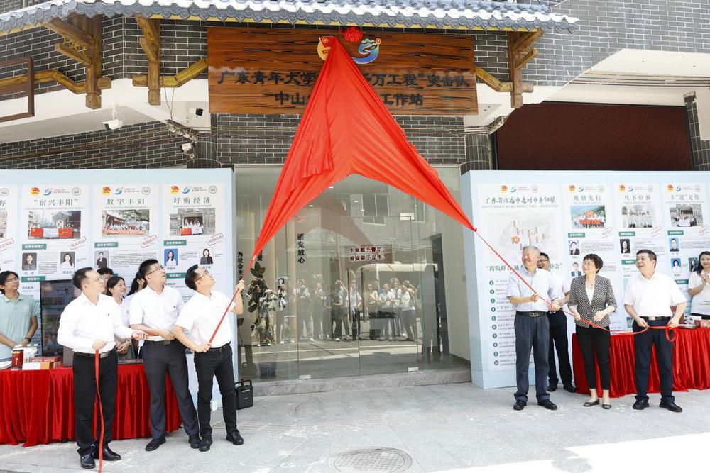 校党委书记陈春声、副书记国亚萍、副书记余敏斌,团省委副书记陈伟健,连州市委书记潘正焕,团清远市委书记刘刚共同为工作站揭牌
