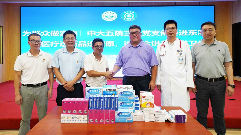 为深入开展学习贯彻习近平新时代中国特色社会主义思想主题教育,高质量开展支部党日活动,让百姓在家门口享受优质医疗服务,7月29-30日,附属第五医院党委书记苗伟带队,内科教职工第一党支部、行政教职工第二党支部、后勤教职工党支部医务人员到东澳岛开展“为群众做实事,送医疗送药品送健康,讲安全讲急救讲卫生”活动,并向东澳村卫生服务中心捐赠了部分常见药品。