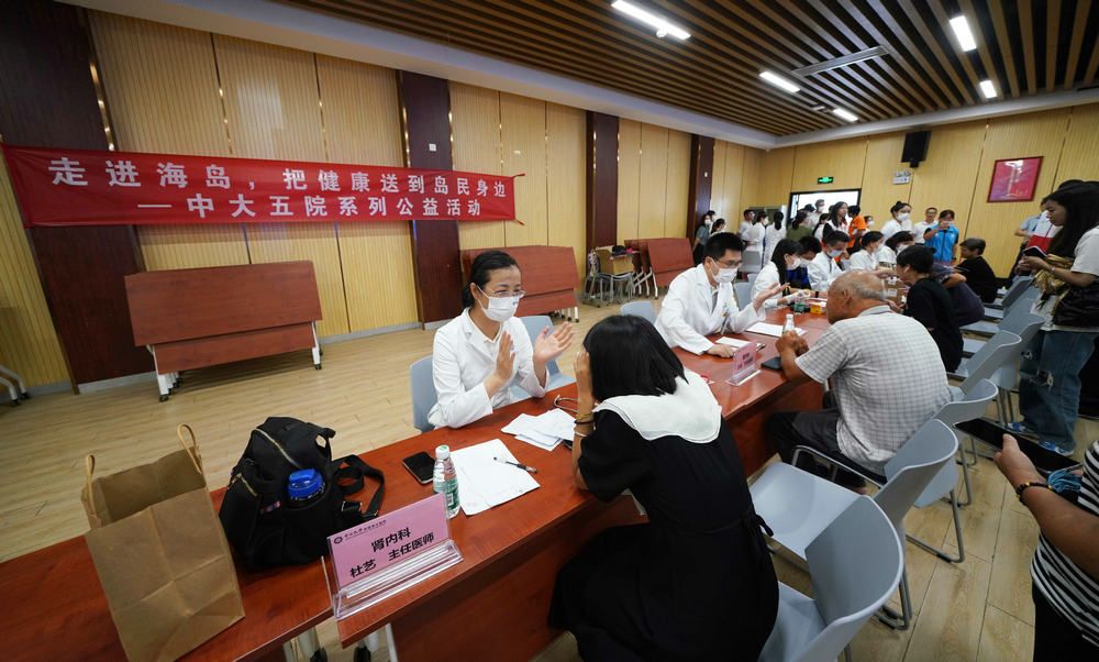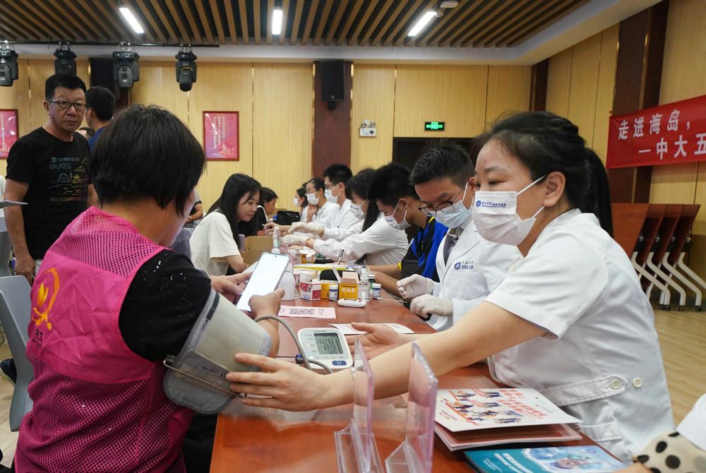 随后,肾内科、呼吸与危重症医学科、肝胆外科、药学部、超声科等科室医务人员为海岛居民提供了疾病咨询,超声检查,血压、血糖、尿酸测量,健康知识科普及免费药品派送等义诊服务。专家们详细了解每个人的身体状况及病史,根据他们的日常生活习惯和海岛生活环境等因素,给予了个体化健康和用药指导及保健建议。