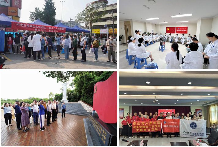 主题教育开展以来,附属第五医院各党支部深入贯彻落实“学思想、强党性、重实践、建新功”的总要求,按照医院党委的部署要求,通过读书会、集中研讨、知识竞赛等多种形式全面学习领会习近平新时代中国特色社会主义思想的科学体系、精髓要义、实践要求;前往中山烈士陵园、宋氏大宗祠、桂山舰登陆点遗址、东江纵队纪念馆等红色教育基地开展学习近20次,传承红色基因,赓续共产党人精神血脉,筑牢信仰之基;通过组织义诊、讲座、培训等方式,广泛组织医护人员进社区、进企业、进学校、进乡村、进海岛、进军营50余次,服务百姓5000余人次,将优质医疗资源送到市民“家门口”,在真抓实干中推动主题教育走深走实,以“为人民服务”实效检验主题教育成效。