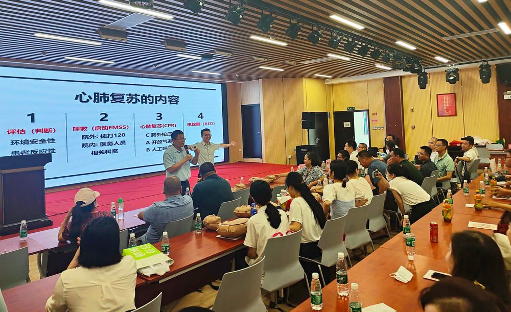 行政教职工第二党支部党员讲解正确的心肺复苏术、海姆立克手法和自动体外除颤仪(AED)急救仪器使用方法
