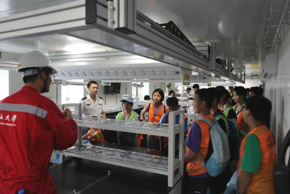 科考中心党支部联合广东海事局以科考船夏令营活动为载体带领青少年走近海洋,在青少年心底埋下一颗向海图强的种子,激发“后浪”奔腾,为推动海洋强国建设注入新鲜力量。