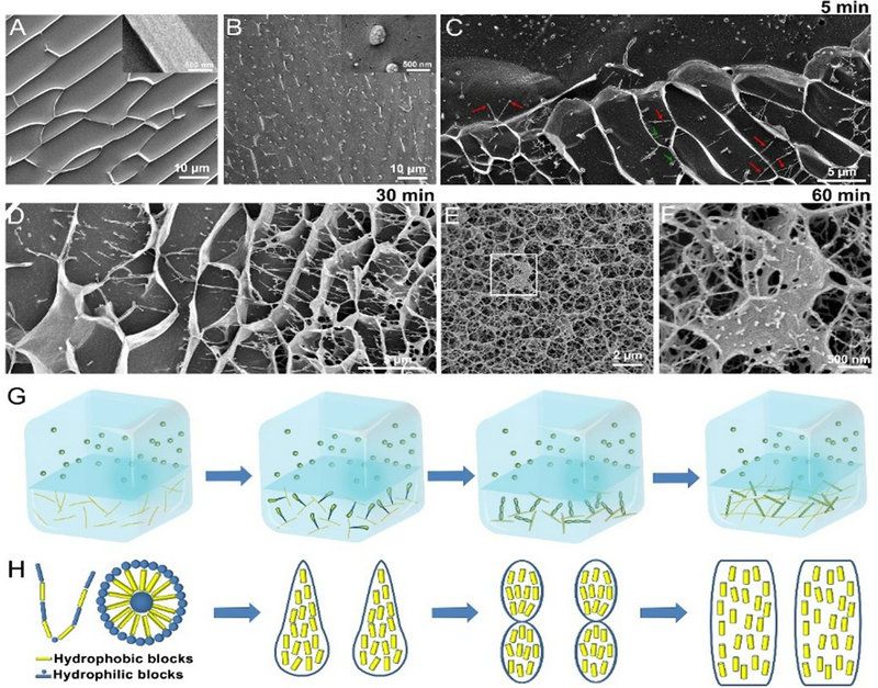 自组装多肽大多通过非共价键作用形成水凝胶,力学强度和稳定性较弱,不利于神经再生。为提高自组装多肽RADA16-X水凝胶力学性能,团队利用RADA16-IKVAV(F-SAP)与丝素蛋白(SF)构建复合水凝胶。与简单复合不同,SF纳米囊泡在静电吸引和渗透压差作用下向F-SAP纳米纤维网络迁移,发生构象变化再组装成纳米纤维,形成具有双网络的F-SAP/SF杂化水凝胶。控制F-SAP与SF作用时间可调控杂化水凝胶力学强度和活性因子释放速率。