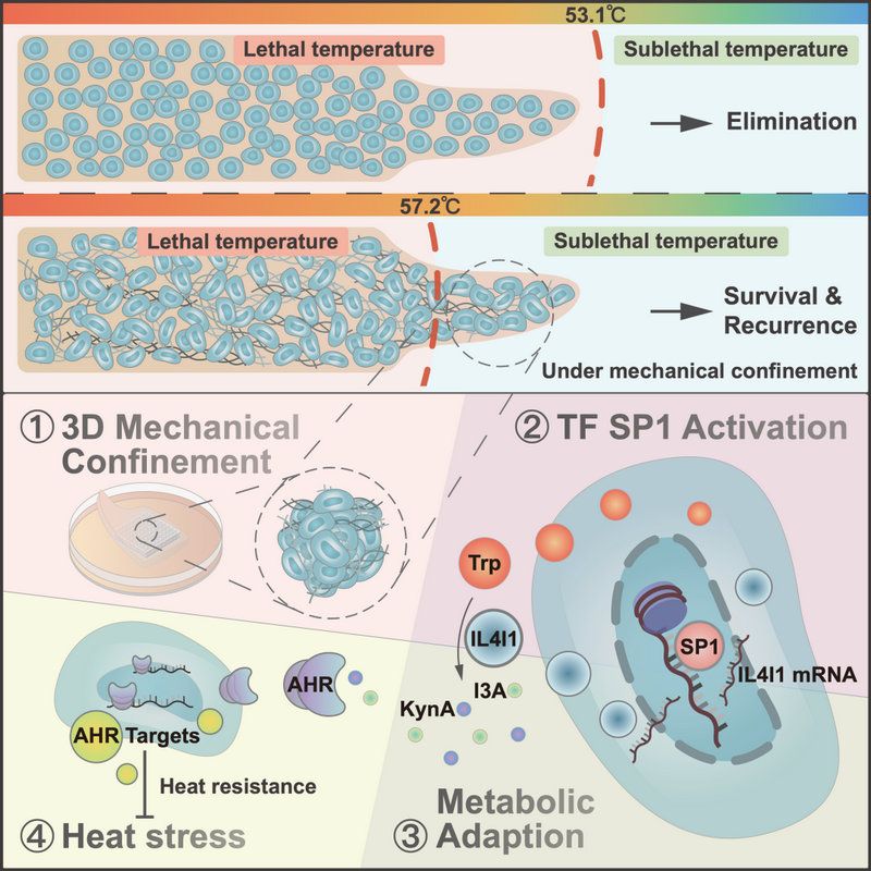 尽管热消融术是早期肝癌(HCC)的根治性治疗手段,但其术后复发仍是目前面临的主要临床难题,这表明部分肿瘤细胞在高温热应激下具备更强的热抵抗。肿瘤3D微环境中的机械应力能在极端条件下决定细胞命运,而目前传统的2D和动物消融模型难以对机械应力进行深入的机制探讨。因此,需要构建高度模拟体内的3D热消融模型,从3D机械应力的角度为防治HCC热消融后复发提供新辅助疗法的临床转化方案。
