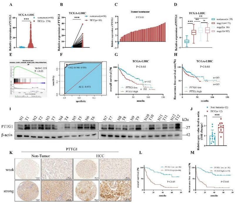 图1 PTTG1在肝细胞癌中表达升高