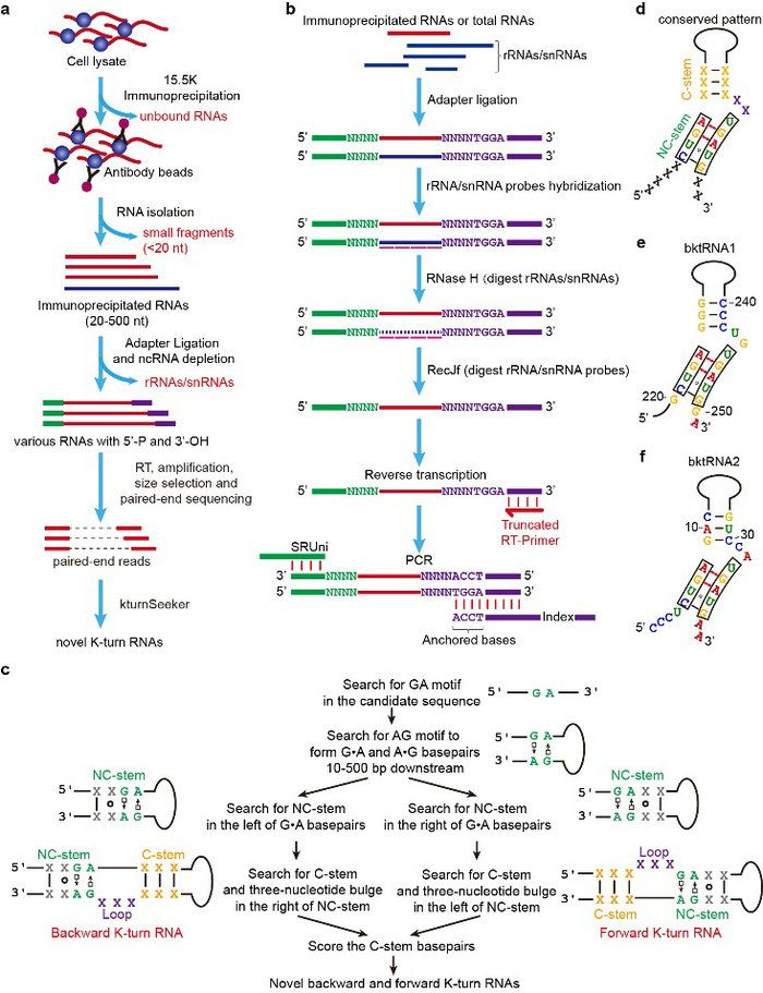 图1 开发新的RIP-PEN-seq测序技术和计算机算法kturnSeeker发现人类的bktRNA