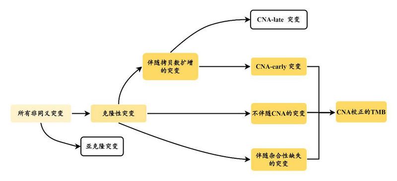 研究团队首先发现,通过表征免疫原性预测免疫治疗疗效的肿瘤突变负荷(TMB)和仅考虑克隆性突变的clonal TMB均无法有效预测在食管鳞癌化疗联合PD-1抗体的疗效,这可能与其表征肿瘤免疫原性的准确度不足有关。既往研究发现,拷贝数变异和突变事件发生的先后关系会影响变异肽段和野生型肽段表达的相对丰度,从而影响突变的免疫原性。研究团队首先根据克隆性突变发生区域的拷贝数变异(CNA)情况对其做出分类,并根据推断的CNA和突变发生的先后关系,进一步将发生在扩增区域的突变区分为CNA-early突变和CNA-late突变;将CNA-late突变排除并对剩余的突变数量进行求和,定义为拷贝数变异校正的TMB(CNA-corrected TMB, ccTMB)。结果显示,具有高ccTMB的患者从化疗联合PD-1抗体中的获益显著优于低ccTMB的患者,在国际上首次证实了优化的免疫原性指标在“PD-1抗体+化疗”模式下可作为可靠的疗效标志物。