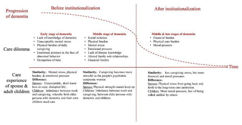 家庭支持是我国非正式照顾的主要来源,尤其对于照护保障不足、专业资源缺乏的失智症患者照顾。团队前期系列研究发现(Age & Ageing 2020; BMC Geriatrics, 2021),我国家庭照护者大多数是中老年人,其本身也患有多种慢性疾病,照护和自我照护的双重压力给照顾者带来身体和精神负担,而不得不求助于专业照护。在以孝道和家庭为中心的集体主义文化中,从家庭照护向机构照护的过渡可能涉及到更多家庭冲突及道德拷问。然而,目前对关于中国失智症家庭照顾者长期照护经历研究甚少,仅有证据聚焦于家庭或机构照护单一维度考量,缺乏更为系统的纵向研究证据。