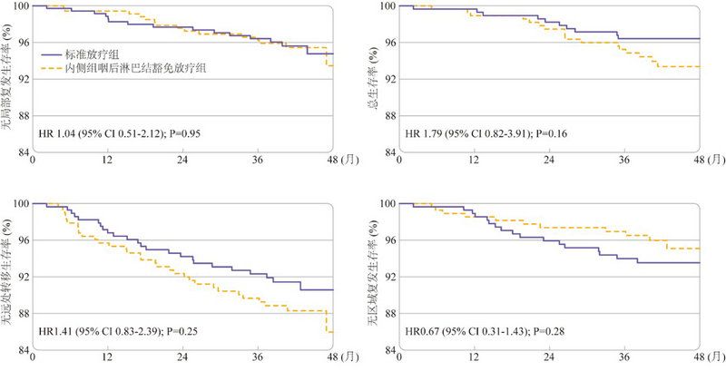 内侧组咽后淋巴区豁免放疗组与标准放疗组生存曲线比较