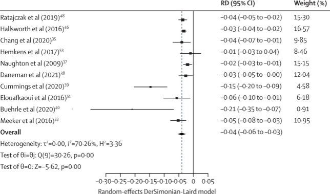 图3 SNF干预对医生抗生素处方行为影响的随机效应森林图