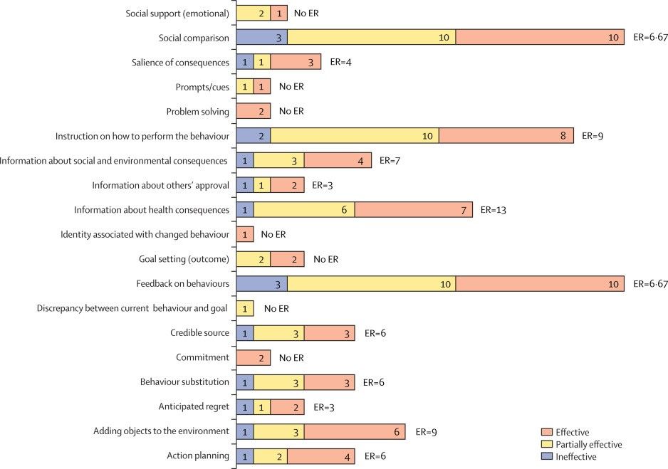 图2 社会规范反馈干预中BCTs的有效比率(ER)